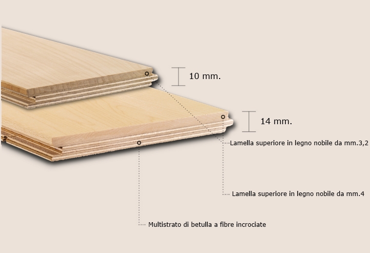 Our parquet is entirely produced in Italy, it is suitable to be set on heating floors and can also be used in green-constructions.
